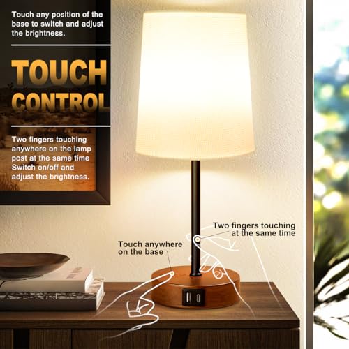 Specification: Modern USB & Type-C Bedside Lamp with Touch Control, Dimmable Table Lamp with White Fabric Shade Enhanced with Gold Threads, Includes LED Bulb – Ideal for Bedroom, Office, Dorm