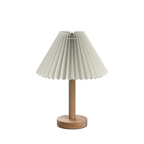 Zenply Small Table Lamp, Bedside Nightstand Mini Lamp for Bedroom Living Room Side Table Small Spaces, Pleated Aesthetic Vintage Lamp Warm White LED Bulb Included