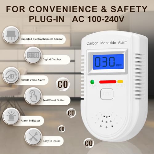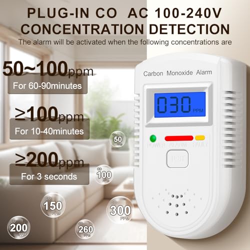 Specification: Carbon Monoxide Detector Plug in Wall,CO Gas Monitor Alarm Detector with Digital Display Sound & Light Warning for Home/Workplace/Travel