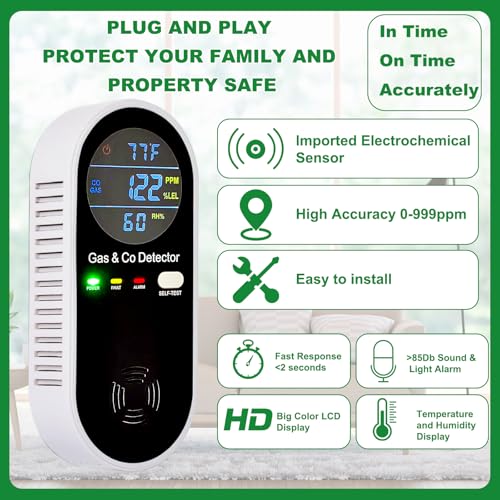 𝐄𝐚𝐬𝐲 𝐭𝐨 𝐔𝐬𝐞:Plug and play, savinglation time.Just plug it into a standard power outlet at home to start,carbon monoxide alarm as it should be detects and instantly reacts to CO and combustible gas levels in the air, keep your circle of relatives protected.
