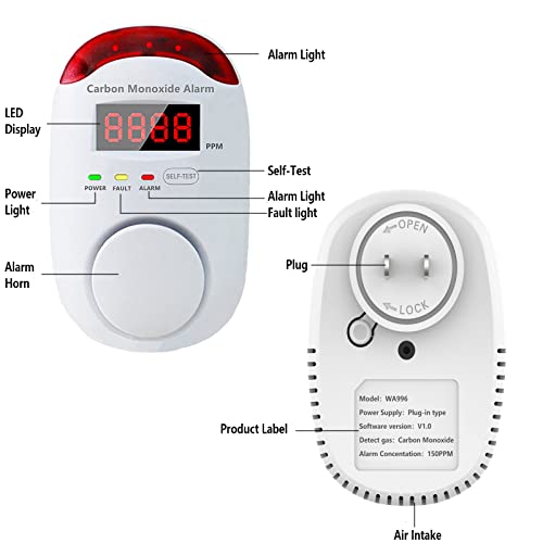 Specification: Carbon Monoxide Detectors Plug in Wall Portable Carbon Monoxide Detector for Travel CO Alarm with LED Digital Display Voice Light Plug and Play