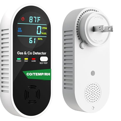 Specification: Carbon Monoxide Detectors Plug in Wall,4-in-1 Rechargeable CO & Gas Level Monitor Alarm Temperature Humidity Sensor Built-in, with Clear LCD Display Sound & Light Warning for Home/Hotel/RV