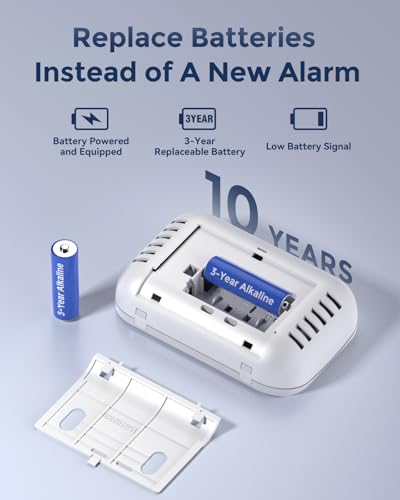 10-YEAR 24/7 PROTECTION WITH REPLACEABLE BATTERY: This CO detector powered by 2 replaceable 1.5 V AA batteries and a 10-year sensor life which provides 24/7 protection even right through power outages