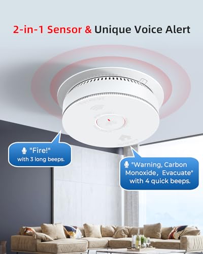 Specification: SITERWELL Smoke and Carbon Monoxide Detector, Smoke Alarm and Carbon Monoxide Detector with Voice Speaker, LED Light, Auto-Check, Smoke Detector Conforms to UL 217 & UL 2034 Standards, 1 Pack