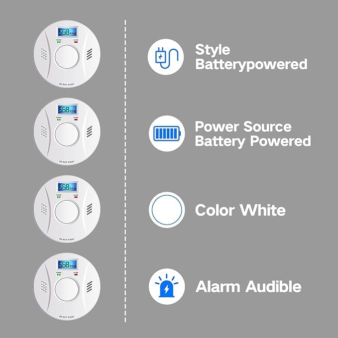 Specification: Smoke Detector and Carbon Monoxide Detector Co2 Detector Battery Powered with Test/Reset Button 4 Pack