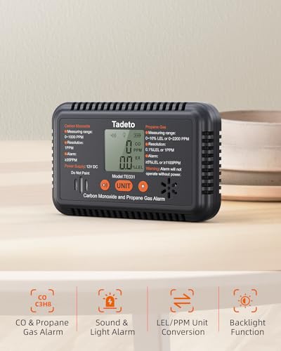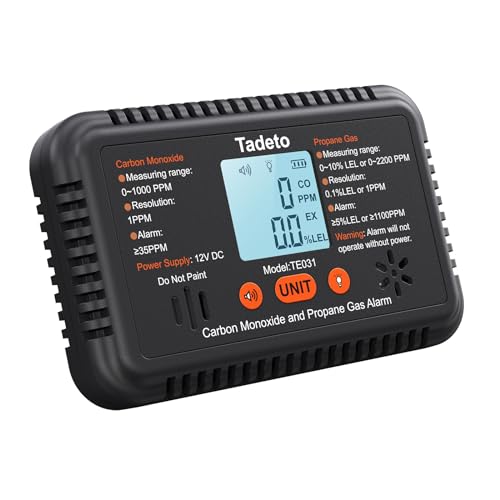 Specification: Tadeto RV Carbon Monoxide and Propane Gas Alarm, 12V DC CO/LPG Gas Leak Alarm with Light and Audible Indicator, RV Carbon Monoxide and Propane Gas Detector with Reset/Backlight for RV/Trailer/Camper