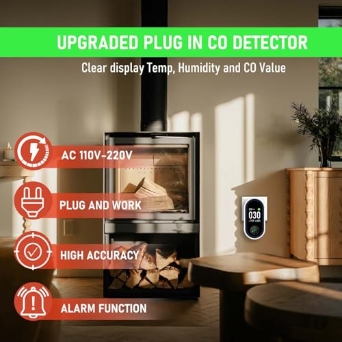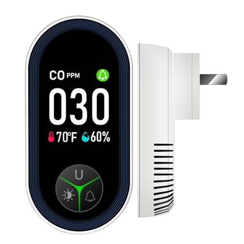 Specification: Upgraded Carbon Monoxide Detector Plug in Wall, Carbon Monoxide Detectors with HD Screen&Indicator Visual&Audible Alarm, 3-in-1 CO Detector(CO Gas Meter, Temp and Humidity) for Home RV Travel
