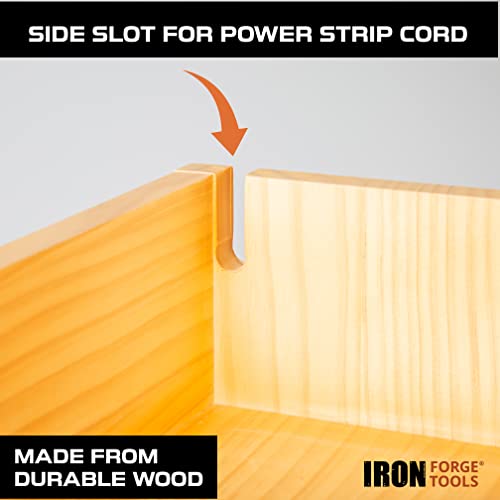 EASY INSTALLATION: With two screws and pre-set holes, this organizer will also be effortlessly mounted on any wall or tool bench. The top section contains power strip installation, and pre-cut slots keep the cord tidy (power strip not included).