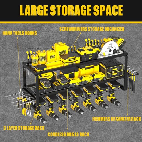 【LARGE SIZE】:Our power tool organizer has upgrade 7 drill holder with three-layer design and double side hanger. Huge space means you’ll be able to keep all your tools organized in one central location and you can never be wasting time in search of your tools again!