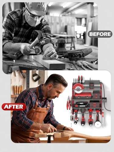 【Thoughtful Gift】The power tool storage rack serves as a practical yet thoughtful gift, ideal for any occasion such as birthdays, anniversaries, Father’s Day, Thanksgiving, or Christmas. Designed for DIY enthusiasts, home improvement hobbyists, and professionals alike, this wall mount tool organizer combines functionality with a touch of warmth, making it a unique present that reflects care and consideration. The inclusion of a power tool charging station enhances its appeal, offering both utility and convenience. This organizer not only improves workspace efficiency but also conveys a meaningful gesture, bringing joy and satisfaction to both recipients and users