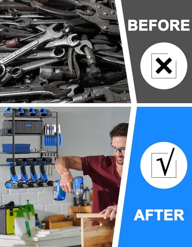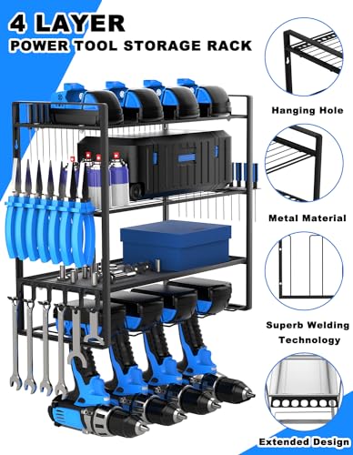 Specification: KIKETECH Power Tool Organizer Storage – Wall Mount, 4 Layers Heavy Duty Drill Holder with Charging Station, Utility Screwdriver Rack & Metal Tool Shelf with Battery Holder, Gift for Men