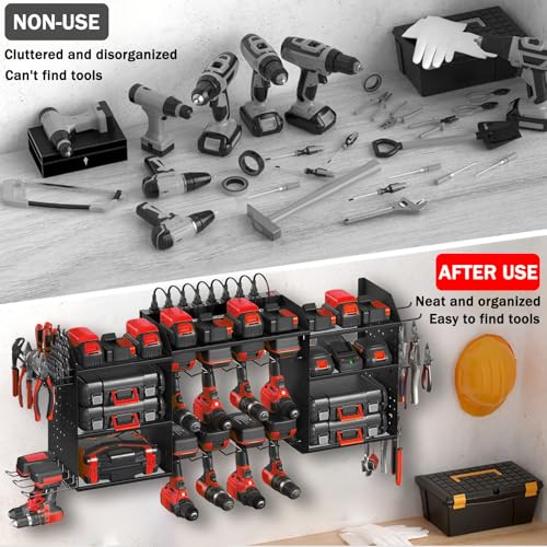 Easy To Install : The installation process of the tool storage rack could be very simple, We provide professional manuals and professional installation accessories presenting clear and straightforward assembly details. You only need a couple of minutes to assemble a drill organizer wall mount.