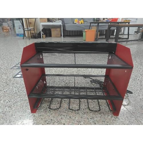 【Tool Shelf Size:】16.5x12x8.7 inches (42 cm x 30 cm x 23 cm). First-layer for rechargeable tool organization, second-layer: the extra height ( 5.35″) brings storage space for your garage tools; Bottom-Layer for 4 cordless drills. 4 long hooks.