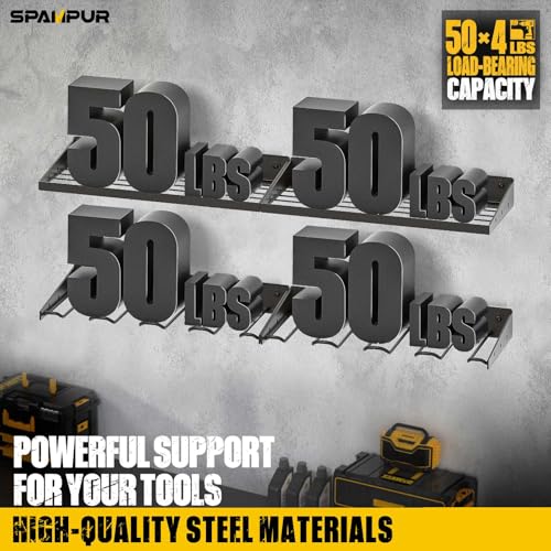 50 x 4 lbs Load-Bearing Capacity: The tool organizers and storage are made of heavy compact steel metal. After load-bearing testing, the utility racks can support up to 50 pounds on sturdy walls. Never again worry about the shelf breaking or the tool shelf falling from the wall up and down