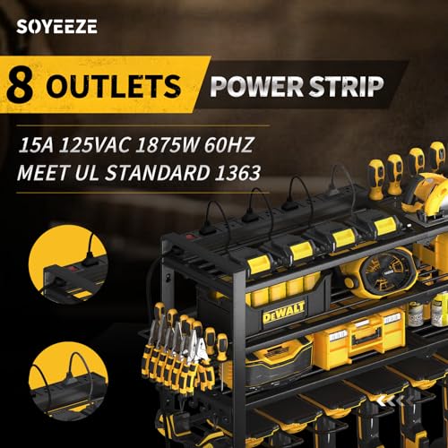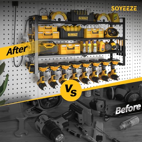 Specification: SOYEEZE Power Tool Organizer with Charging Station Wall Mount- Garage Storage Rack 8 Cordless Drills Holder 4 Layer Utility Tool box Organization & Shelf For Workshops Toolrooms Carport Utilityroom