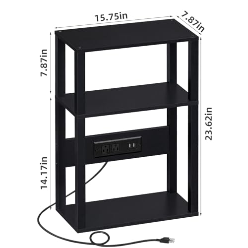 Specification: 3-Tier Small Narrow Wood Side Table Set of 2 with Charging Station – Skinny Nightstand for Small Spaces, Slim Bedside Table with USB Ports and Outlets – Thin End Table with Storage, Black
