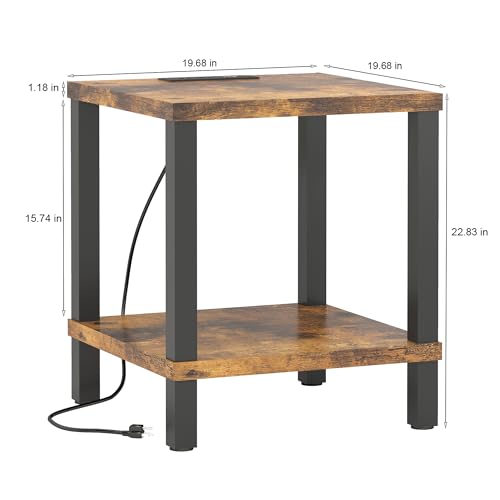 Specification: End Table with Charging Station, 20 Inch Square Side Table with USB Ports & Power Outlets, No Tools Required to Assemble, for Living Room, Bedroom, Stable Frame,Rustic Brown XXCTG04RE