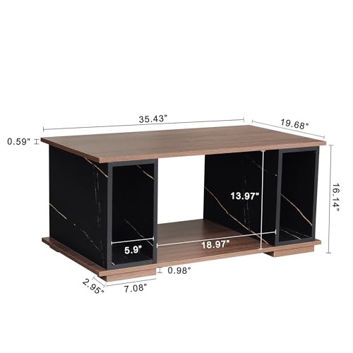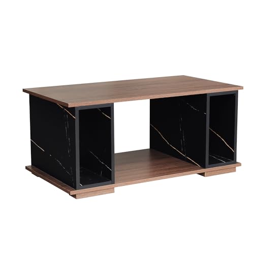 Specification: GIA Home Furniture 3 pcs Living Room Table Set, Including 1 Particle Board Coffee Table with Marble Vein Walnut & 2 End Tables with Charging Station, USB Ports, 2 Drawers & Open Shelves