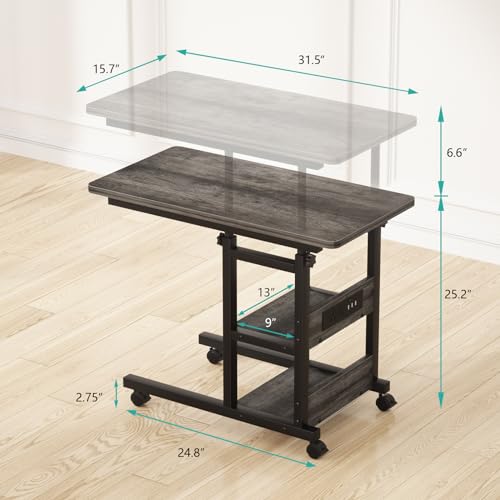Specification: Height Adjustable End Table with Charging Station, Mobile C Shaped Laptop Side Table with Wheels, 3-Tier Sofa Couch Table with Storage Shelve for Living Room Bedroom, Grey Oak