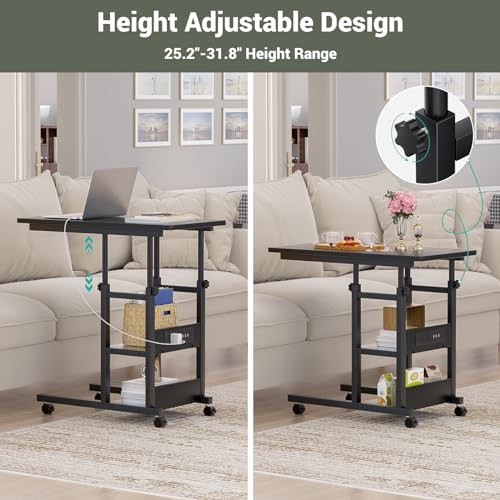 Multi-function C-shaped End Table: The C-shaped design laptop table with charging station have 4 smooth rotary lockable wheels, it can easily slide underneath the sofa, couch and bed, it is convenient for your work, eat, suitable for living room, bedroom, tiny house, small space.