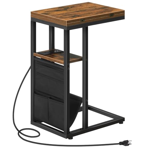 Specification: HOOBRO C Shaped Side Table with Charging Station, Foldable End Table with Storage Bag, Sofa Couch Table Snack Table for Small Space in Living Room, Bedroom, Rustic Brown and Black BF101USF01