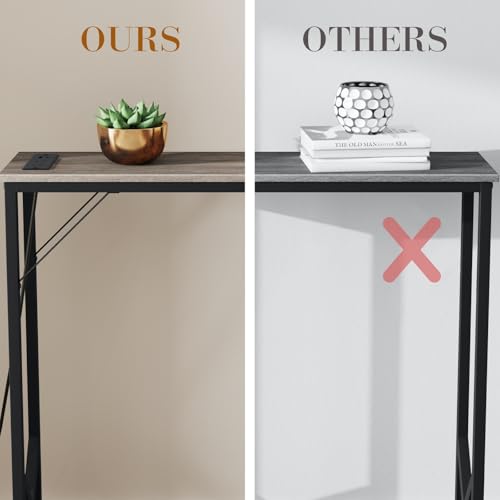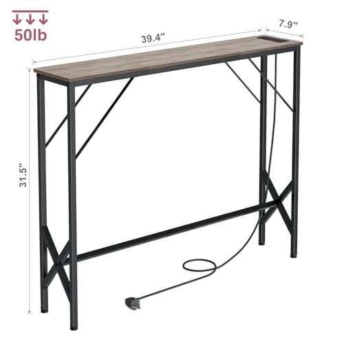 NEFROM Console Table, Skinny Entryway Table with Charging Station, Narrow Long Sofa Table, Behind Slim Couch Table for Entrance, Hallway, Living Room Decor ST-GY100-1