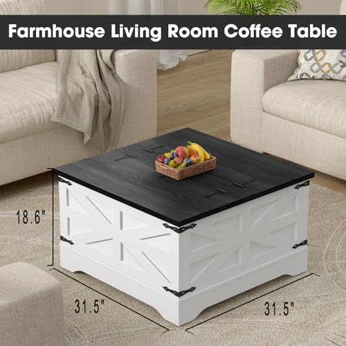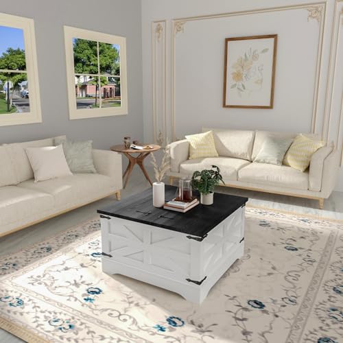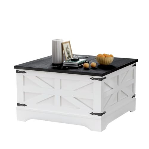 Specification: Square Coffee Table with Hidden Storage, Flip-Top Hinged Lift for Living Room, Center Table with Large Storage Space, Rustic Coffee Table for Home or Office (Black)