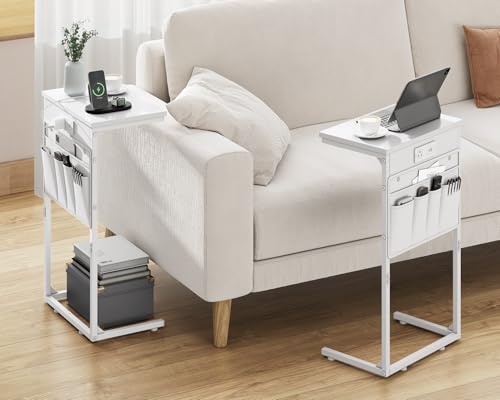 Specification: Vagusicc C Shaped End Table with Charging Station, 28″ Tall Side Table for Couch, Small Slide Under Sofa Table with Storage Bag for Small Spaces, Snack Table TV Tray Table Arm Table for Living Room