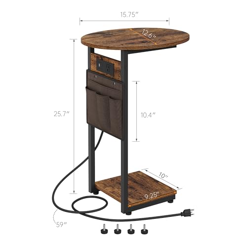 Specification: Vagusicc C Shaped End Table with Charging Station, Small Side Table for Couch, TV Tray Slide Under Sofa Table with Metal Frame for Living Room Bedroom, Round Couch Side Table, Rustic Brown and Black