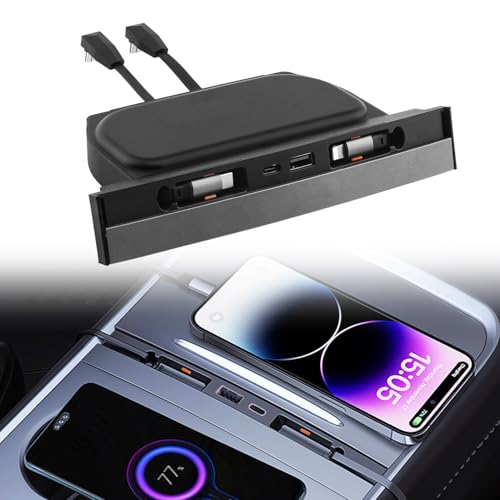 Specification: Zekrom Retractable Center Console USB Hub for Tesla Model 3 2021-2023 for Tesla Model Y 2021-2024, Interior Accessories Central Control Docking Station with Fast Charging Cables