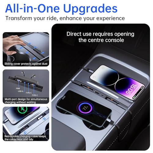 Zekrom Retractable Center Console USB Hub for Tesla Model 3 2021 – 2023 for Tesla Model Y 2021 – 2024, Interior Accessories Central Keep an eye on Docking Station with Fast Charging Cables PLEASE NOTE: It is compatible exclusively with for Tesla Model Y (2021-2024) for Tesla Model 3 (2021-2023). It is INCOMPATIBLE for Tesla Model 3 Highland(2024), Model 3 Performance(2024), Model S, and Model X. If in case you have any questions about our products, please ask us for help and solutions.