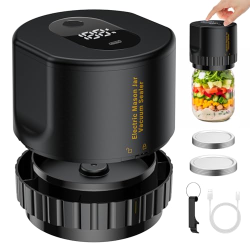 Specification: Electric Vacuum Sealer for Mason Jar – Jelife Vacuum Sealing Machine Kit for Wide Mouth & Regular Mouth Canning Jars with 10 Lids, 2000mAh Vacuum Sealer Food Saver Storage, Black