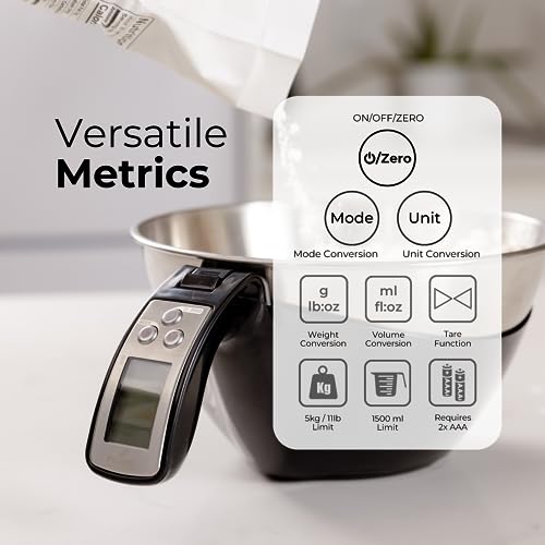 Multifunctional: This digital kitchen scale includes a large, detachable stainless steel bowl for mixing and measuring. It also makes cleanup a breeze. Its sturdy grip handle makes it highly portable.
