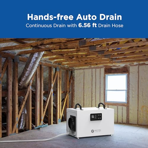 Larger Dehumidification Capacity, Energy Star Certified: Moiswell crawlspace dehumidifier delivers a potent 206 CFM airflow and a max dehumidification capacity of 145 pints/day (70 pints AHAM), making it fast and powerful to cover a larger area of up to 6000 sq ft and effective in a range of commercial large humid applications for optimizing air quality and reducing moisture levels in confined areas.