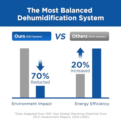 Absolute best Energy-saving Design: This commercial-grade energy efficient dehumidifier adopts the innovative R32 dehumidification system, ensuring higher drying performance, lower electricity consumption, and exceptional eco-friendliness. The 24 hrs auto ON/OFF timer helps save power and energy bill.
