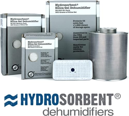 Clothing, Leather Storage Closet Dehumidifiers: Our silica desiccant beads absorb moisture and protect clothing and leather items from damage caused by humidity. These gel-based silicone beads for moisture come with single mini canisters (4” x 2” x .6”) that absorb 3 cubic feet of moisture each, are reusable, & proudly made in the USA!
