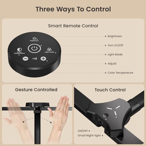 【Smart Remote Keep an eye on & Gesture Switch Keep an eye on】 : This super bright desk lamp is equipped with a wireless smart remote Keep an eye on, allows you to select the mode you wish to have faster. Gesture switch means that you can turn the light on or off with a gentle wave of your hand within 6 inches of the sensor. At the same time, there is also a touch switch above the lamp head to offers you multi-mode Keep an eye on of the desk light. The memory function will restore your last setting.