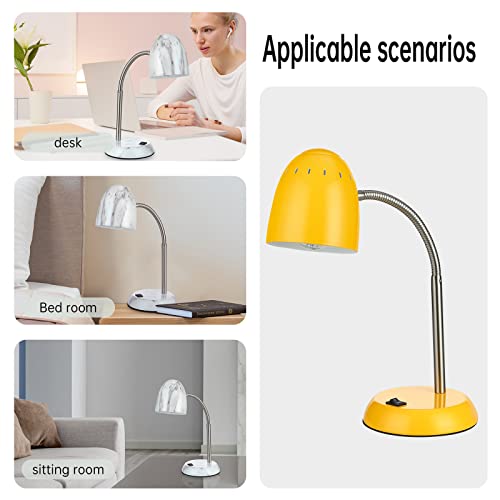 Eye-Caring Table Lamp of Simple Designs Home E26 Led Screw Basic Metal Desk Lamp with Flexible Gooseneck Hose Neck Study Lamp for Bedroom Office Living Room Convenient On/Off Switch(Yellow)