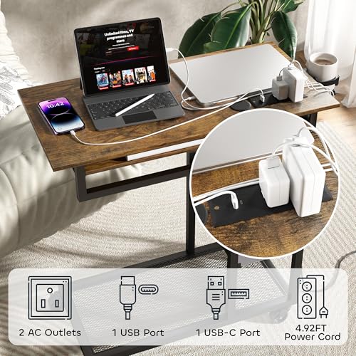 Specification: Height Adjustable C Table with Charging Station, Mobile Laptop C Shaped End Table, Couch Desk with Wheels, Couch Side Table with Storage Drawer for Living Room Bedroom