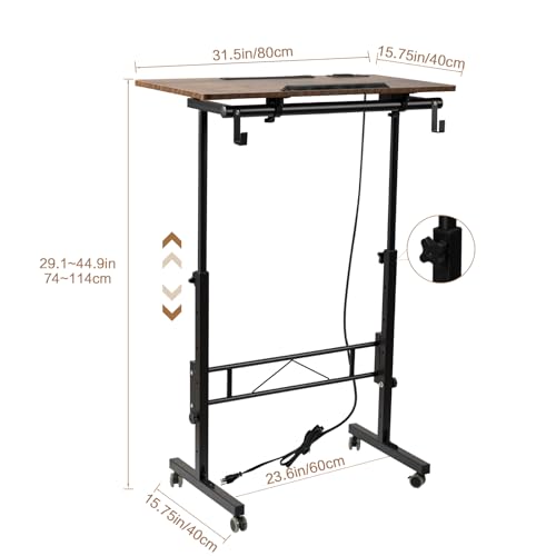 Specification: SIDUCAL Standing Desk Height Adjustable with Tiltable Tabletop, Rolling Laptop Desk with Charging Station, Sit Stand Portable Stand Up Desk with Wheels, Rustic Brown