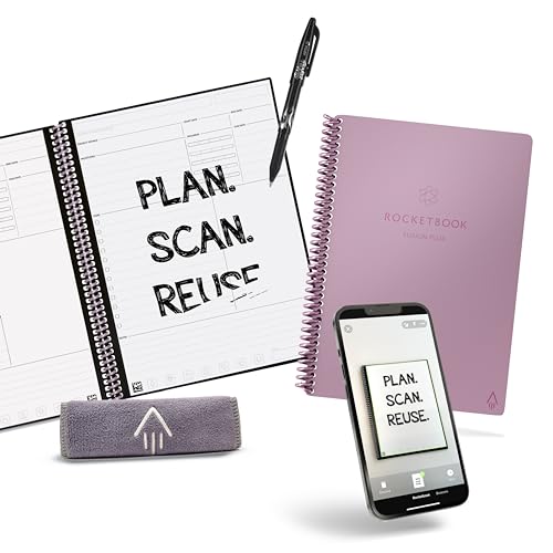 The Rocketbook Fusion Plus is the ultimate, all-in-one notebook and a more versatile and robust version of the preferred and best-selling Rocketbook Fusion. The Rocketbook Fusion Plus is a notebook and planner combination that was once designed for value-driven working professionals who prefer all-in-one solutions. Built with more pages than our standard Rocketbook Fusion, the Fusion Plus has 60 reusable pages (30 sheets) and is packed with 11 templates. These templates consist of Project Management, Monthly Goals, Lists, Monthly Planner, Weekly Planner, Custom Table, Meeting Notes, Lined, Dot-Grid, Graph, and Blank layouts. Our signature, reusable paper permits you to write smoothly with the included Pilot FriXon pen, then magically wipe note clean with a damp cloth and reuse over and over. Plus, the free Rocketbook app is compatible with the Fusion Plus so as to blast your notes, schedule, to-do lists, and the like. to the cloud for optimal organization.