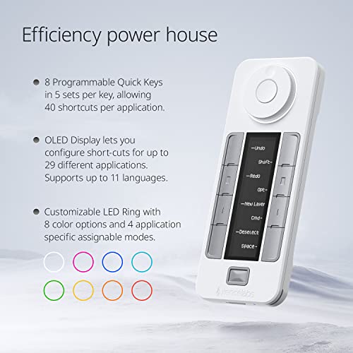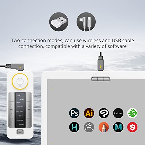 Customizable Quick Keys: Working in unison with the Drawing tablet. The shortcut keys give you 5 sets of 8 keys – a total of 40 programmable functions per application. An OLED display to show you each key assignment at a glance and 30 hours of sustainable working when fully charged can make any workflow much more easier.