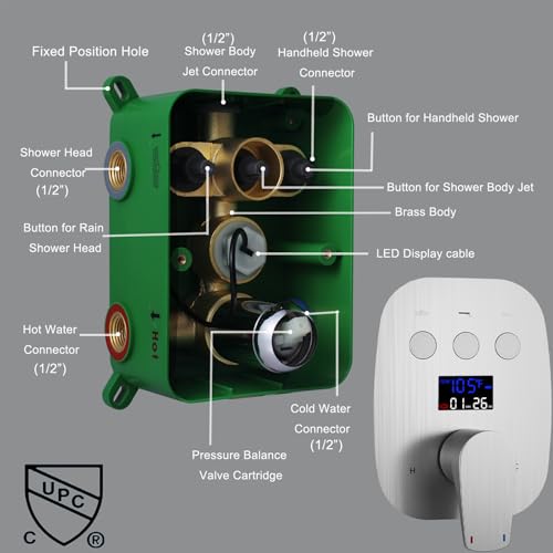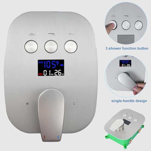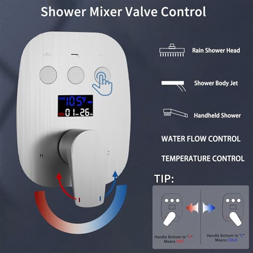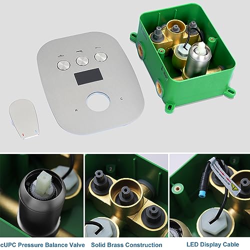 Specification: 3 Way Shower Mixer Valve Kit Brushed Nickel Solid Brass Digital Display Temperature Control Pressure Balancing Mixer Shower Diverter Valve Kit Replacement