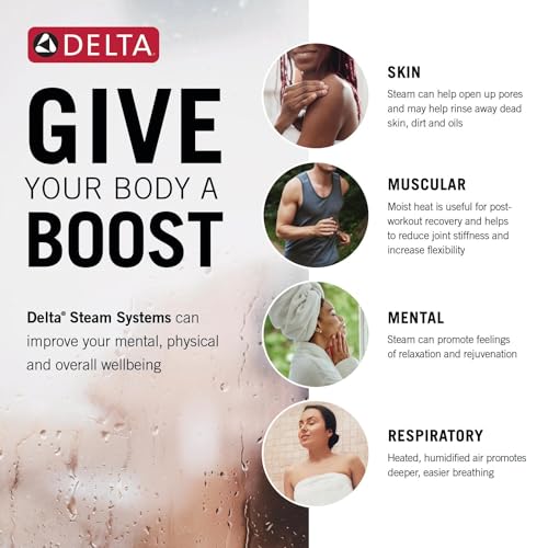 Specification: Delta Faucet SimpleSteam 6kW Steam System Kit Matte Black, Includes 6kW Steam System Generator, Square Digital System Control, Square Steam Head, Matte Black 5P-EST06-BL