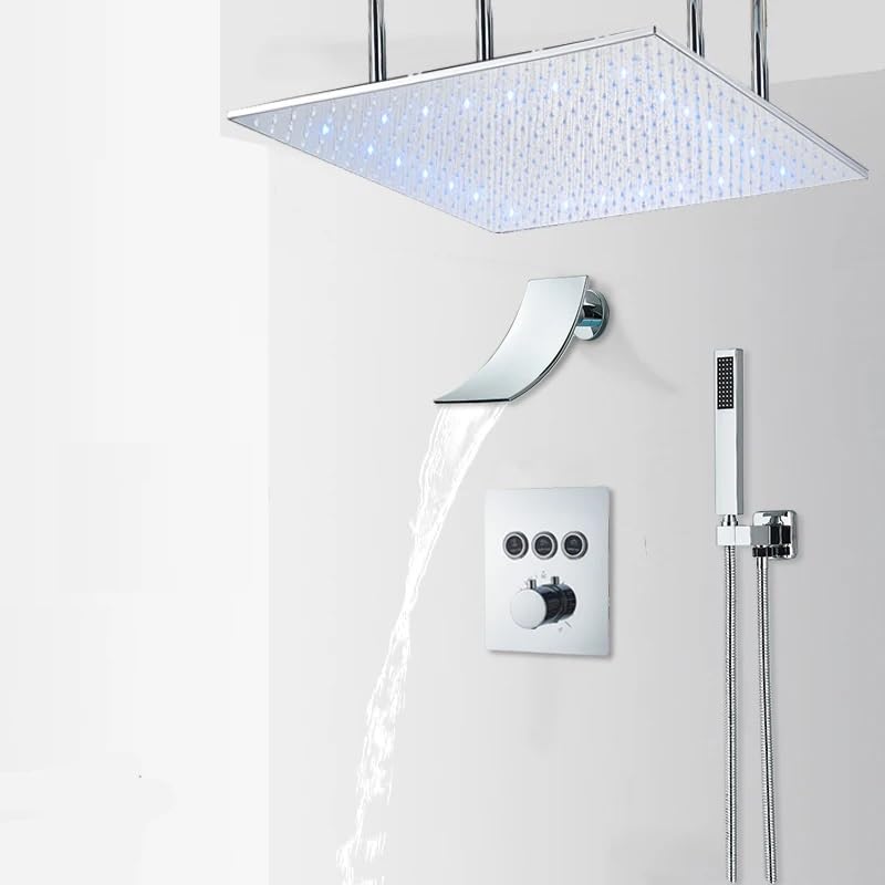 Specification: Shower Sets for Bathroom Chrome LED Thermostatic Top Rain Shower Faucet Waterfall Shower System Button Control Thermostatic Mixer Tap Bath Shower Tap 3-Way 20inch A
