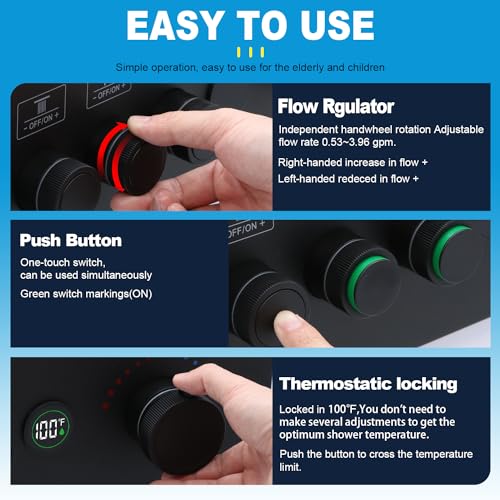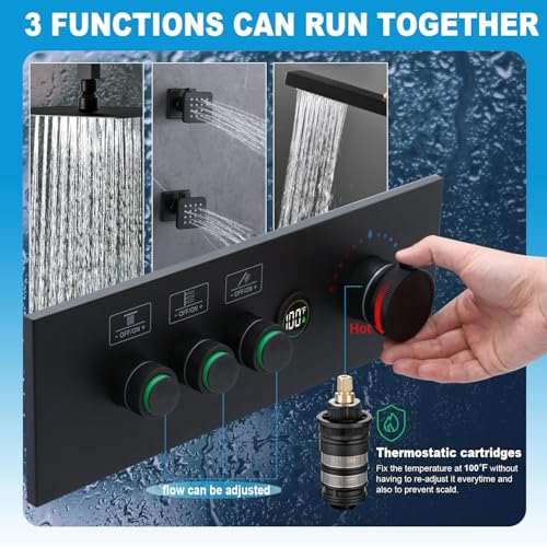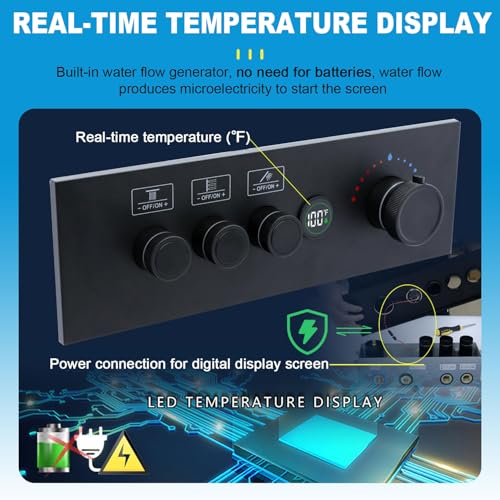 Specification: Temperature Display Shower Mixer Valve, 3 Way Push-Button Shower Diverter with Independent Volume Control, Matte Black
