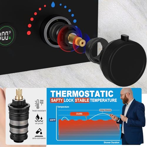 【Thermostat Shower Mixing Valve】The digital thermostatic valve lets you set and care for a precise water temperature for your shower. Universal thermostatic shower valve, pressure balancing shower diverter avoids the discomfort caused by sudden changes in water temperature and is very suitable for the elderly or children, which features scald prevention, more considerate for your family.