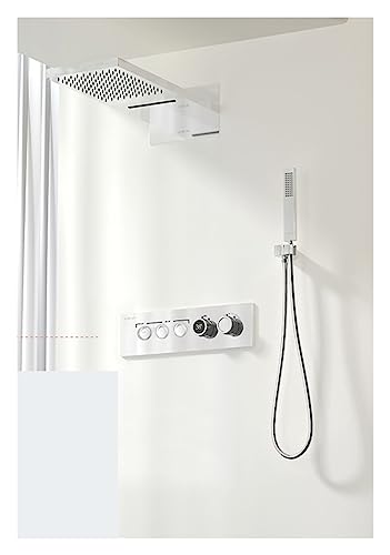 Specification: Thermostatic Shower Mixer Set Luxury Black Brass Shower,Wall-Mounted LED Digital Display Design,Cold & Hot Dual-Control 4-Function Ceiling Shower Tap (3r Chrome 1)