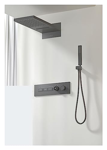 Specification: Thermostatic Shower Mixer Set Luxury Black Brass Shower,Wall-Mounted LED Digital Display Design,Cold & Hot Dual-Control 4-Function Ceiling Shower Tap (3s Bushed Grey 1)
