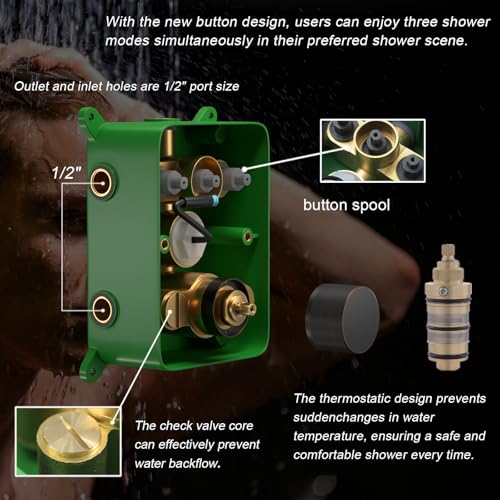 Advanced Thermostatic Cartridge: Regulate water temperature precisely at 38°C/100°F, preventing discomfort from excessively hot or cold water, ensuring a safe and pleasant shower experience, especially for children and seniors